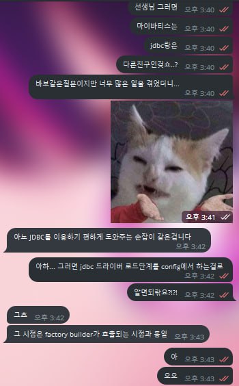 사용자가 데이터를 요청했을 때, db에 접근하기 위해 커넥션 객체를 생성하게 된다 (ex_ Connection conn = 어쩌구 저쩌구...)